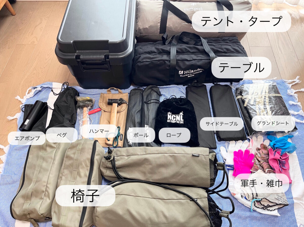 ファミリーキャンプ1泊分の持ち物【全体像】