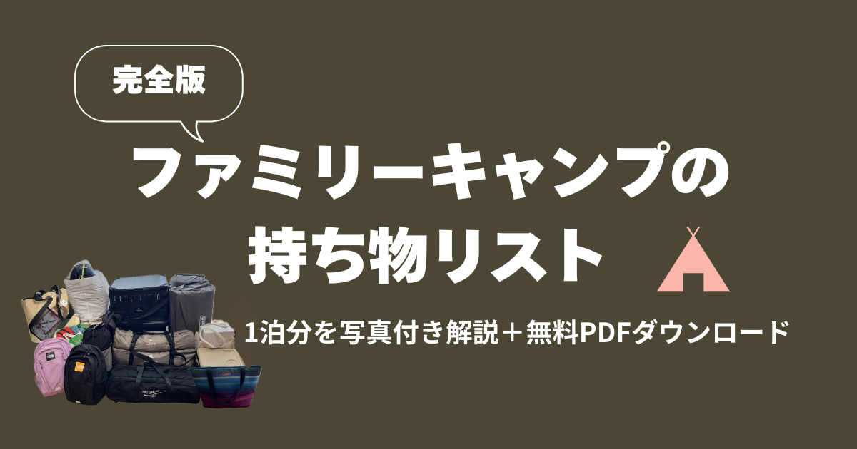 『初めてのファミリーキャンプ、何を持っていけばいいの?』 そんな疑問にお答えするため、キャンプ歴2年の我が家が実際に1泊キャンプで持参している持ち物を写真付きで全公開します。