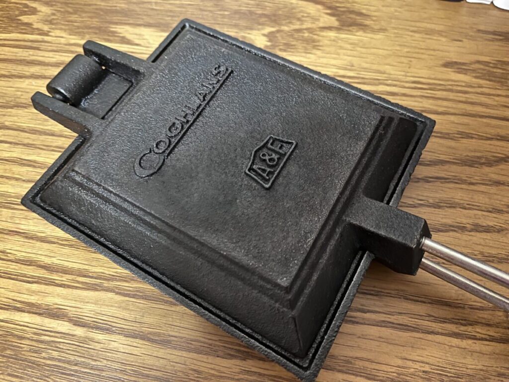 私がキャンプで使用しているホットサンドメーカー。日本のA&F(エーアンドエフ)社がカナダのアウトドアメーカーCOGFRAN’S(コフラン)に特注して完成したものです。