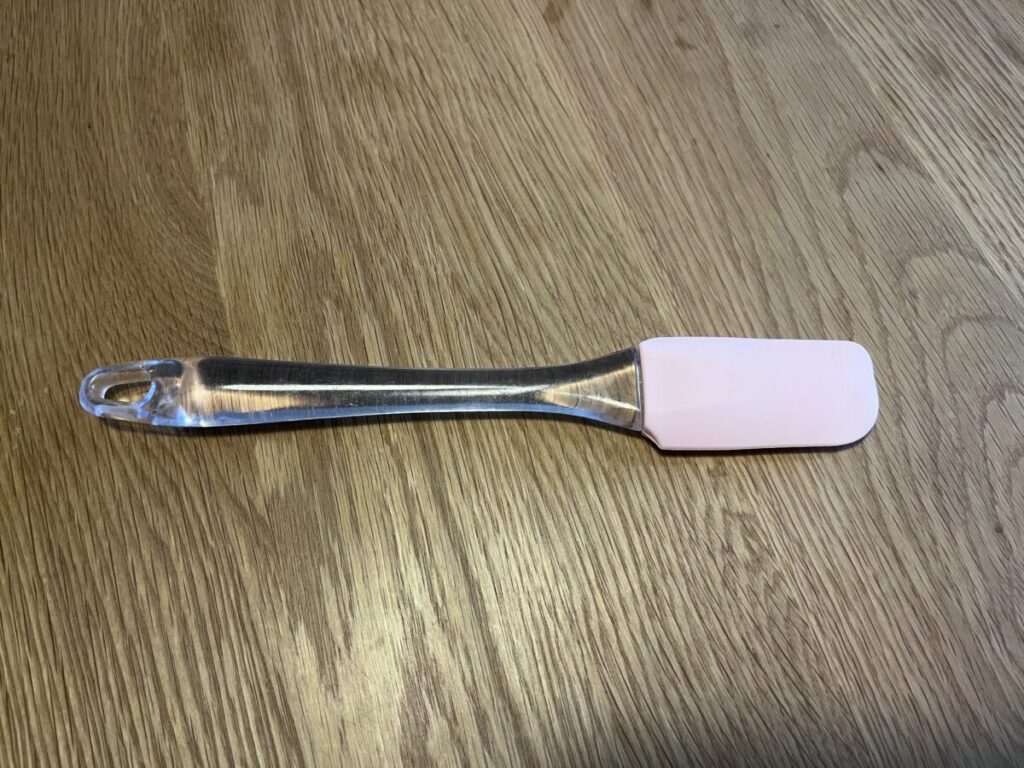 ゴムベラを使えば安全に油を伸ばすことができます。パンをプラスするときにパンがはみ出そうになれば、押し込むこともできます。
