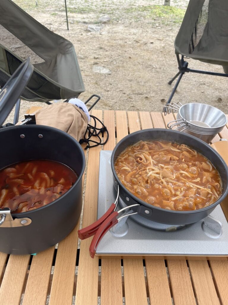 キャンプでの得意料理は、「なんでも好きなものを入れてグツグツ煮るだけの鍋」と「なんでも好きなものを焼いて塩やタレをつけて食べる焼肉」です。