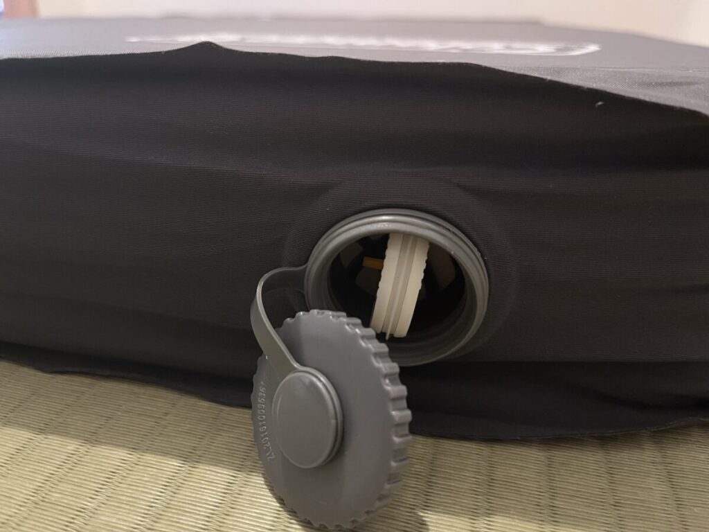 バルブ部分の損傷が、空気漏れの原因になりやすいようです。バルブ部分を把持してマットを移動させるということがないようにマットは「面で持って」移動させます。また、空気を入れすぎると負担がかかりやすいため注意が必要です。