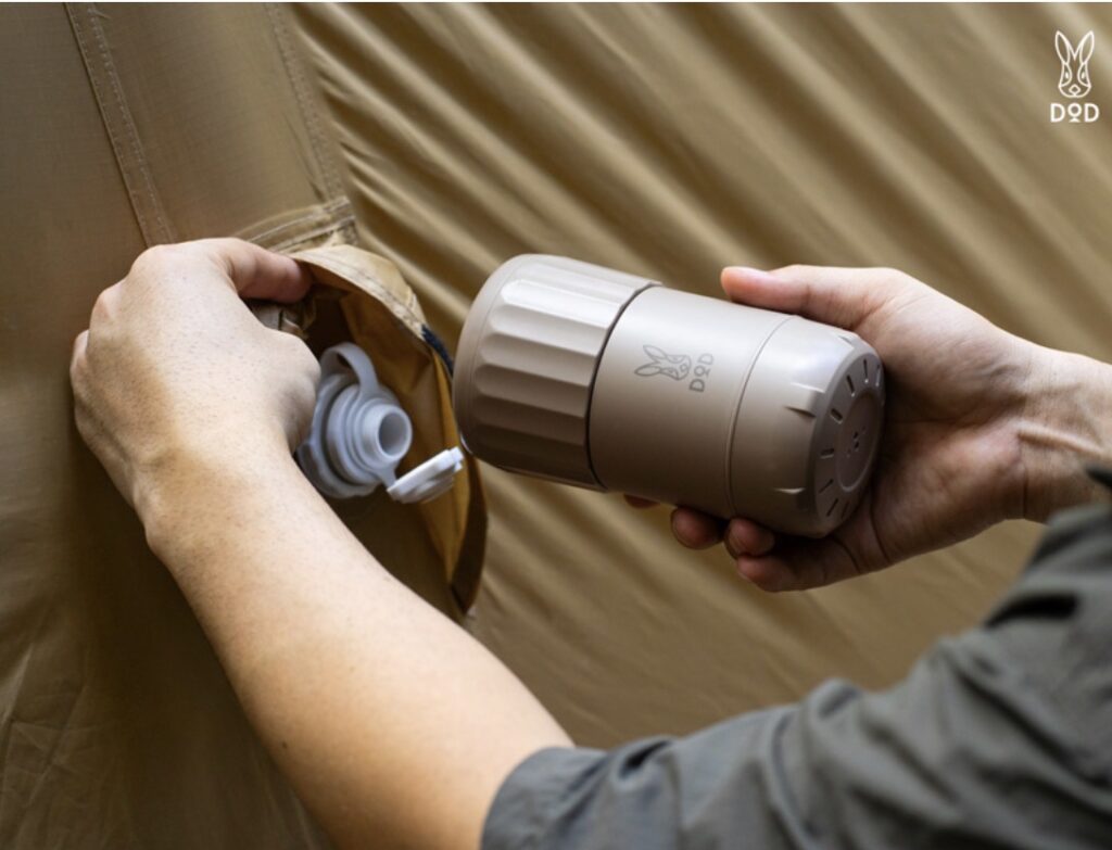 持ち運びし易い手のひらサイズの電動ブロワーです。テントやギアについた砂や水滴、汚れを飛ばして撤収を楽にしてくれるだけでなく、DODのエアマット外ねの極みの吸気に使用することもできる優れものです。