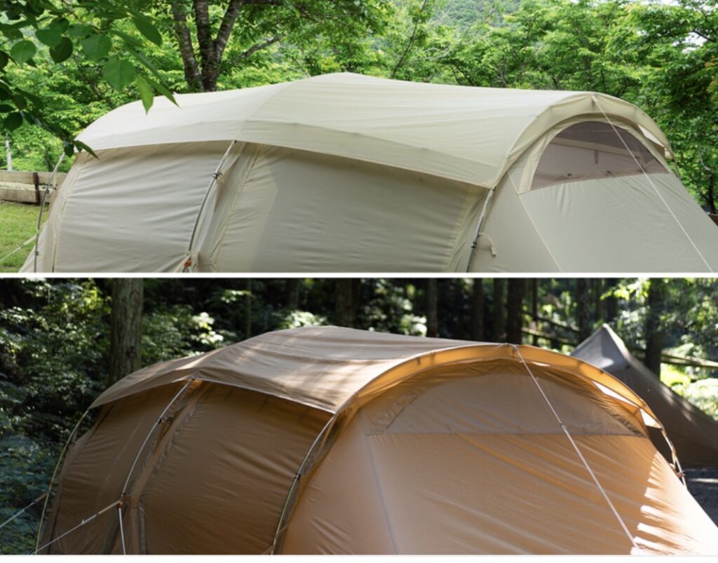 DODで人気の2ルームテントカマボコテントのような形のテントがまた登場しました。ポールをテントに通さなくても良い構造で、設営がしやすい構造になっています。
