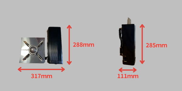 使用時寸法はW317×D288×H120mm、収納時寸法はW111×D285×H114mmです。