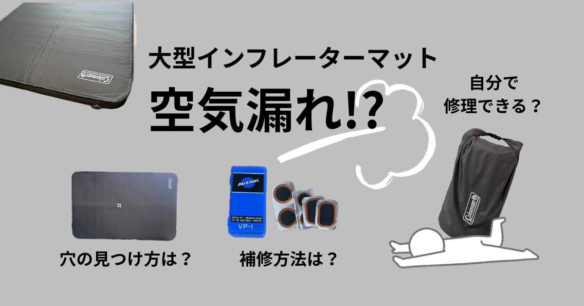 愛用しているColeman(コールマン)キャンパーインフレーターマットハイピーク/ダブルに、使用2年目で空気漏れが発生しました。買い直すには高価なマット。自分で修理できないかと挑戦した結果を、マンション住まいのリアルな視点でお伝えします。