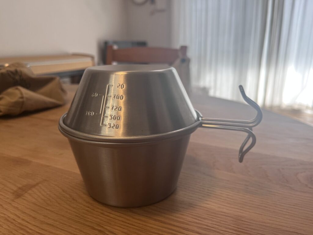 特に530mlの上に350mlのシェラをかぶせると、簡易的な蓋として機能します。少し固定されるので、保温にも役立ちます。